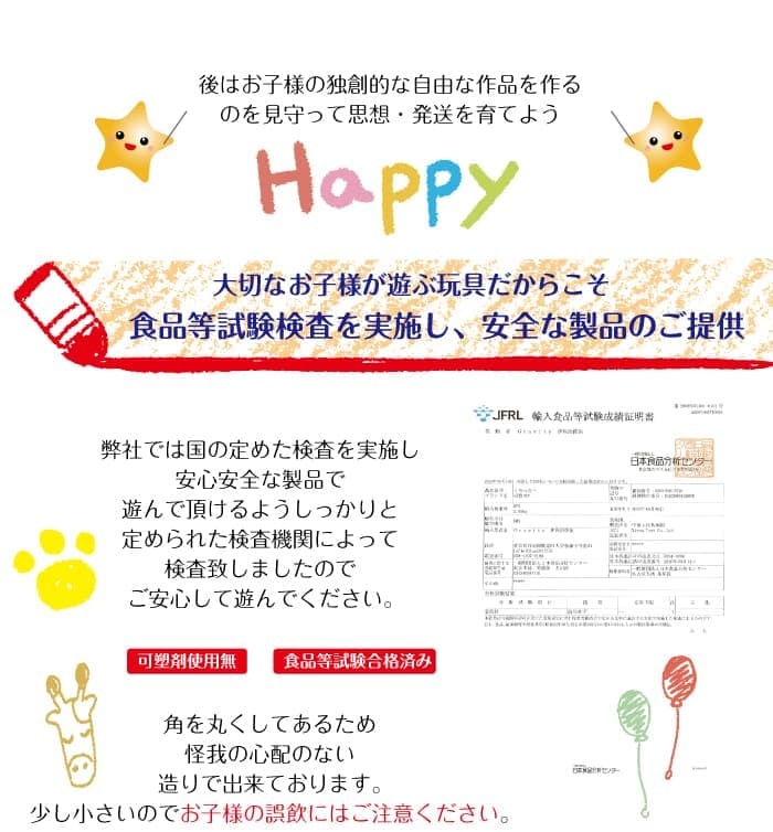 弊社では国の定めた検査を実施し 安心安全な製品で遊んで頂けるようしっかりと定められた検査機関によって検査致しましたのでご安心して遊んでください。