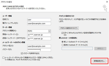| セキュリティで保護されたパスワード認証(SPA)でのログオンが必要 | チェック【なし】 |